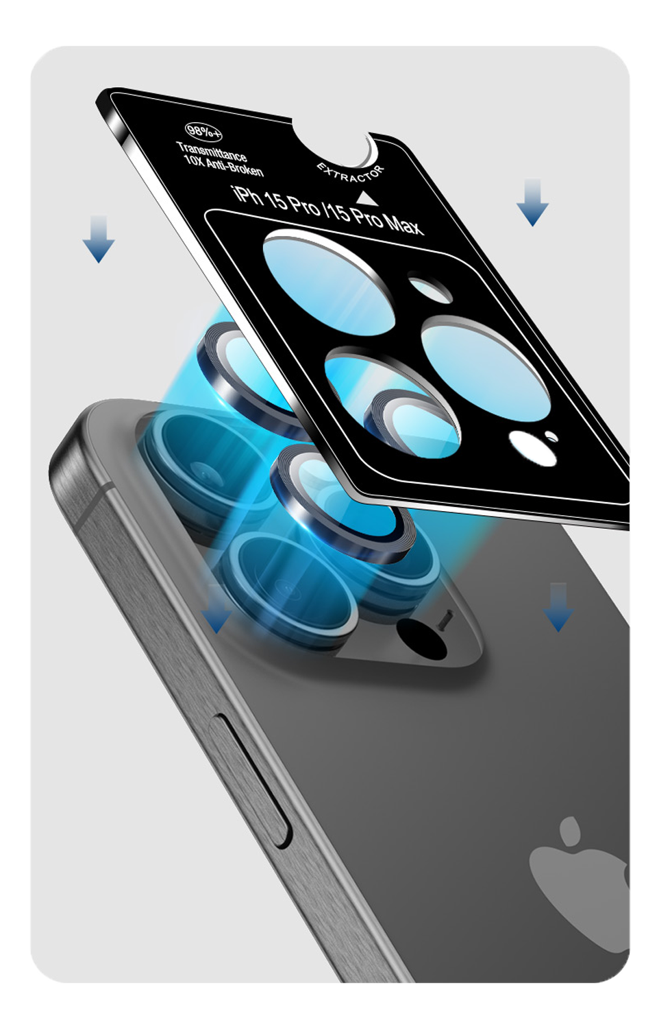 Захисні лінзи розташовані в аплікаторі так, щоб їх можна було легко і правильно наклеїти. Процес не складний, а сам аплікатор містить інструмент для можливого зняття оригінальних захисних лінз.